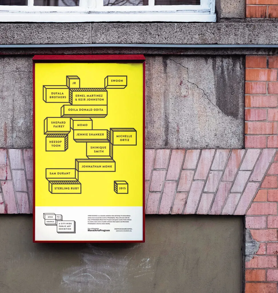 Open Source brought 14 artists from around the globe to the streets of Philadelphia for a three-week citywide public art exhibition. In partnership with Mural Arts Philadelphia and J2, we built the exhibition and every piece of collateral from the ground up based on a shapeshifting brand that literally breaks down the fourth wall to blur the lines between art, life, and the canvas we call our city. This was an all-hands-on-deck endeavor. Our web developer built it with plywood, a senior designer’s husband applied the vinyl, our creative director played lighting designer, and to this day we’re still scraping the yellow paint from our fingernails.
